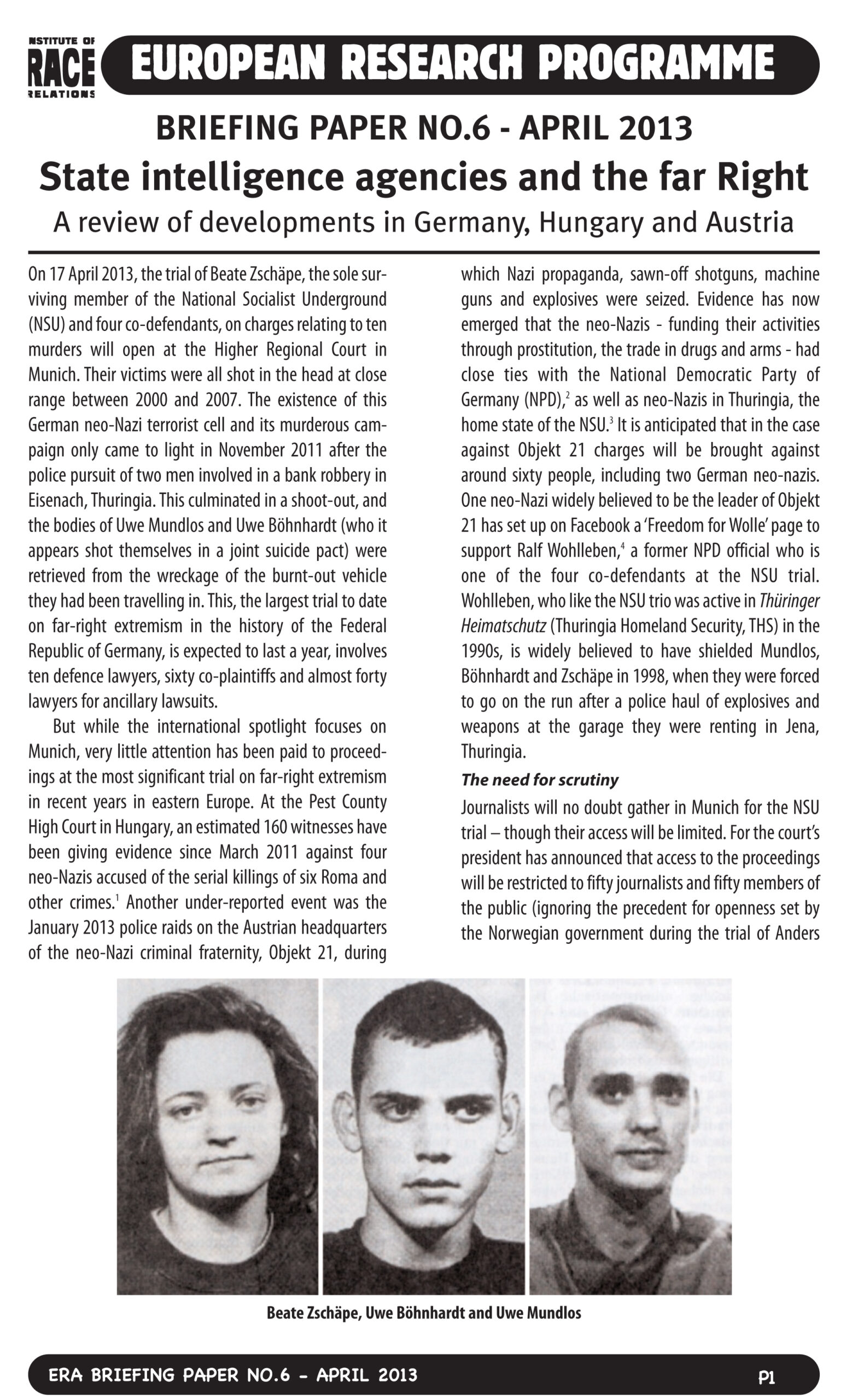State intelligence agencies and the far Right: A review of developments in Germany, Hungary and Austria examines the security services’ approach to the far Right and finds that far from clamping down on growing fascism, some of the tactics of security services are enhancing conditions for its growth. Download a free copy -